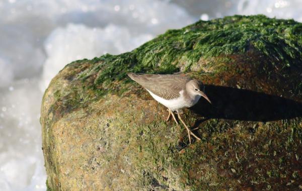 Shorebirds: Juvenile: As non-breading, but covers are strongly berred with buffish-brown at the tip. Other contour feathers of upperparts shows narrow buff fringes when fresh, but these wear off rapidly to leave a rather isolated area of barring on the coverts of the folded wing. Tertials are plain grey-brown, except for a buffish tip and some subterminal brown barring. Derfor 1k.