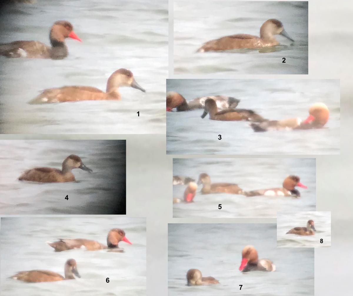 "concerning your bird I think it is most likely a hybrid with an Aythya, the bill color and the extensive pale area atrround the base of the bill point to that. also it seems to be subtly different in head and body shape to a Red crested pochard (however that is more difficult to see).