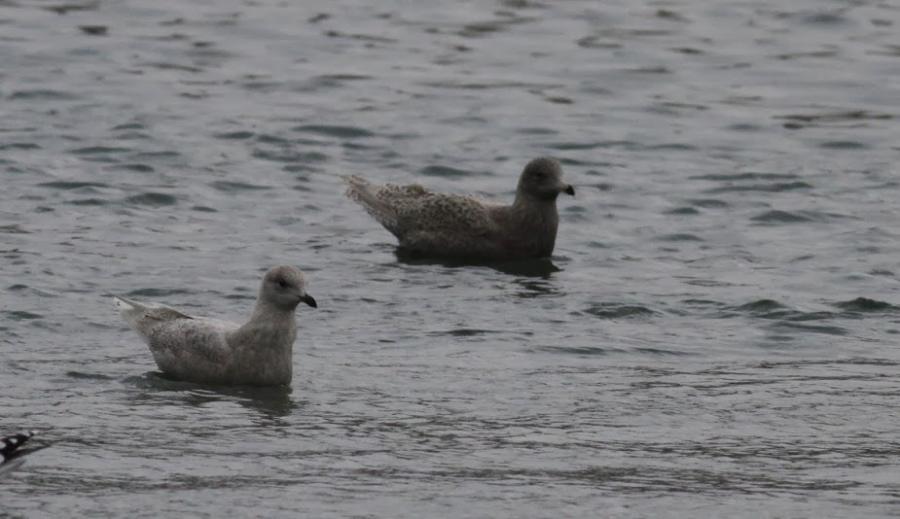 Her er et meget pædagoisk billede af de to "hvide" måger sammen. |