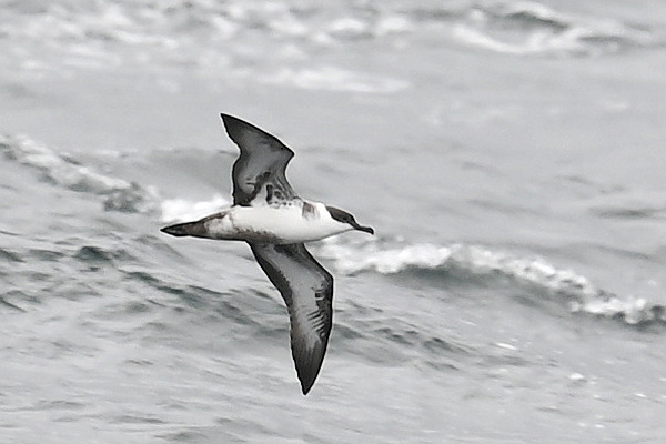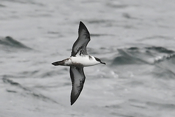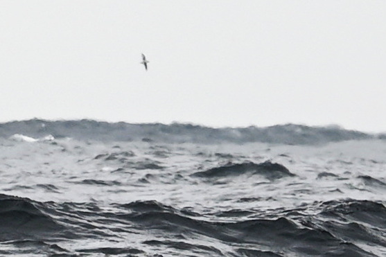 Den sidste af de ni sjove stormfugle passerede kl. 11:25. Første glimt af denne fugl var da den passerede gennem kikkertfeltet og forsvandt bag skibet. Den kom kort efter frem på den anden side af skibet. Det første indtryk var, at det var en mallemuk. Efter kort tids obs blev vi enige om, at det ikke var tilfældet – den var for lille og flugten passede ikke på arten. Da vi begge så fuglens hvide krop, antog vi, at det måtte være en Almindelig Skråpe. Vi så ikke oversiden med sikkerhed. Det var meget svære observationsbetingelser, da der var bølger og, vi var nødt til at stå op. Vi fik således ikke noget klart indtryk af vingeformen. Under observationen udviste vi dog usikkerhed om det nu kunne være noget andet, og derfor tog vi så mange billeder af fuglen som muligt for, at vi kunne dokumentarer bestemmelsen til Almindelig Skråpe. Men det skulle billederne vise sig ikke at kunne bekræfte. Hvad billede serien i stedet viste, var en serie af en Petrel med jizz og dragt som Desertas/Fea’s/Zino’s Petrel!!